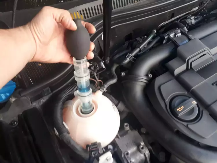 Motor gerekli ısıya gelince yani fan actıktan sonra, test kiti ile genleşme depo kapağının içinden buhar çekilir egzoz gazı yanma bölgesinden soğutma sıvısına karışıyorsa mavi olan sıvı önce yeşile sonra ise sarı renge döner, bu da üst kapak contasının zarar gördüğünü gösterir. test sıvısı mavi rengini koruyorsa conta sağlam demektir